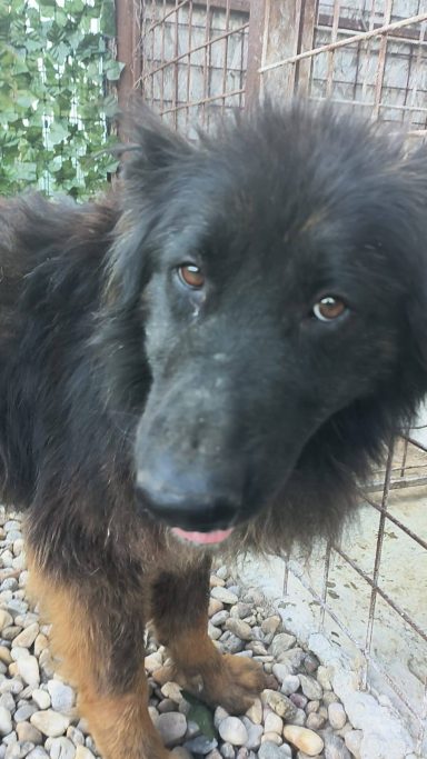 Als Caius vom Tötungsshelter Breasta in das private Shelter der Familie Vasian kam, sah man ihm an, dass er harte Zeiten hinter sich hatte. Er war abgemagert , voller Ungeziefer und sein Fell starrte vor Dreck - da wo er noch welches hatte... Ein Leben auf der Straße, die Hundefänger und schließlich die Tötung, hatten deutliche Spuren hinterlassen .