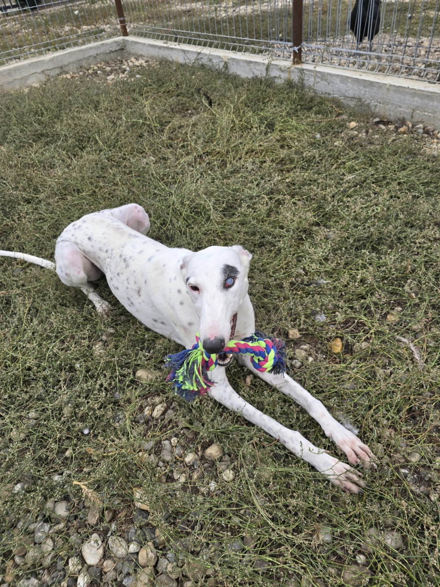 Ob er je eine Wohnung von innen gesehen hat? Ob er je an Halsband/ Geschirr und Leine geführt wurde? Wir können es nicht sagen, denken aber dass weder das Eine, noch das Andere zutrifft. Es gibt also erstmal jede Menge zu lernen, für den Süssen. Sicher kein Problem für ihn, wenn er die Zeit - und Möglichkeit dazu bekommt. Einen Hund sein Leben lang in einen Zwinger eingesperrt zu wissen, tut weh - bei einem Windhund ganz besonders . Wir hoffen, dass das Shelterleben für Monty bald ein Ende hat und er eine Familie findet, bei der er tun kann, wofür er geboren wurde :