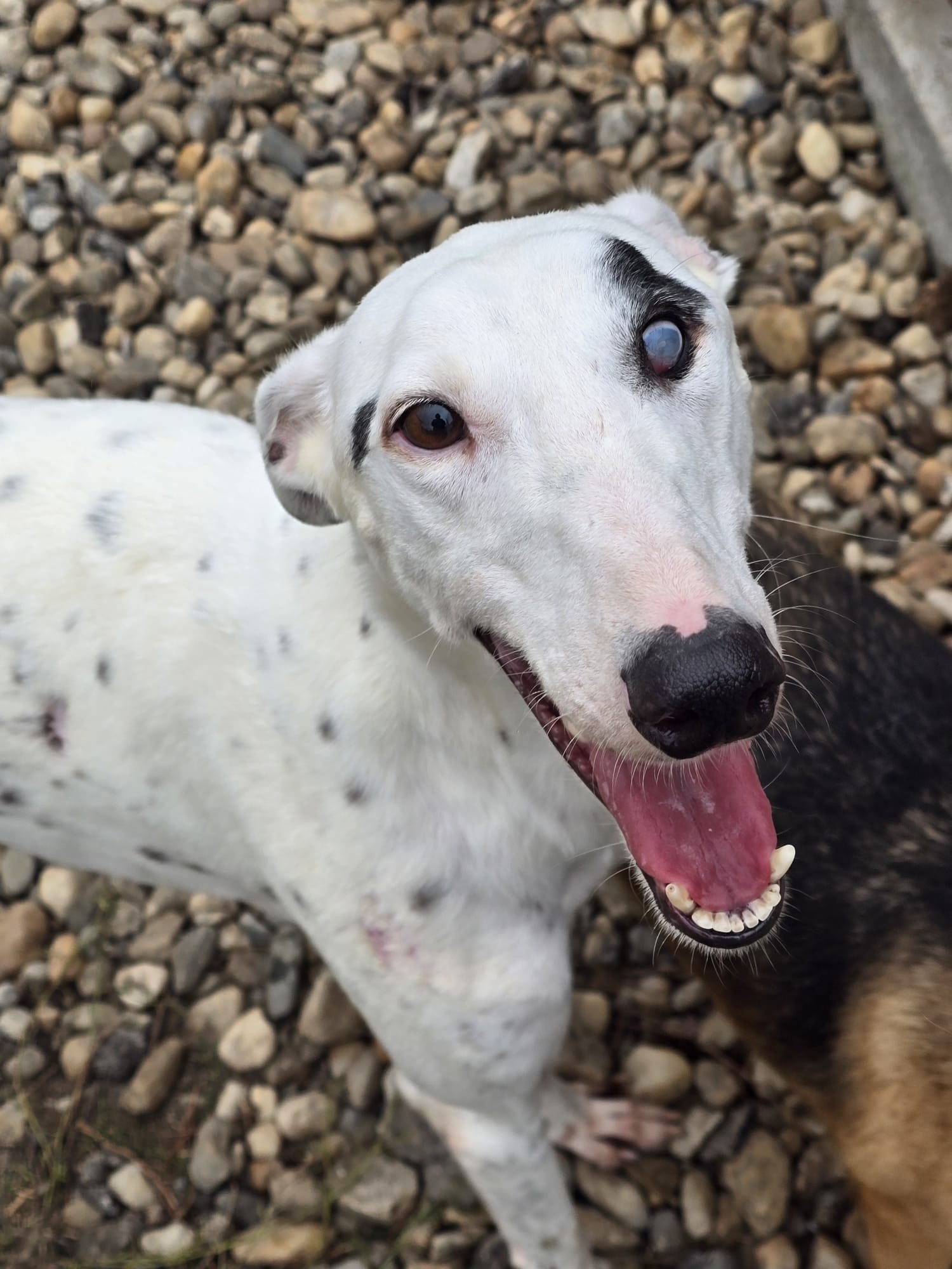 Dort entdeckte Octavian den Rüden mit dem dicken Auge , der offensichtlich ziemliche Schmerzen hatte - und nahm ihn kurzerhand mit. Er brachte ihn zu einem Ophtalmologen nach Bukarest, der ihn gründlich untersuchte und eine Verletzung durch ein Trauma diagnostizierte. Zum Glück konnte das Auge medikamentös behandelt und erhalten werden - seine Sehkraft allerdings nicht. Monty ist auf dem linken Auge blind, aber schmerzfrei und topfit.