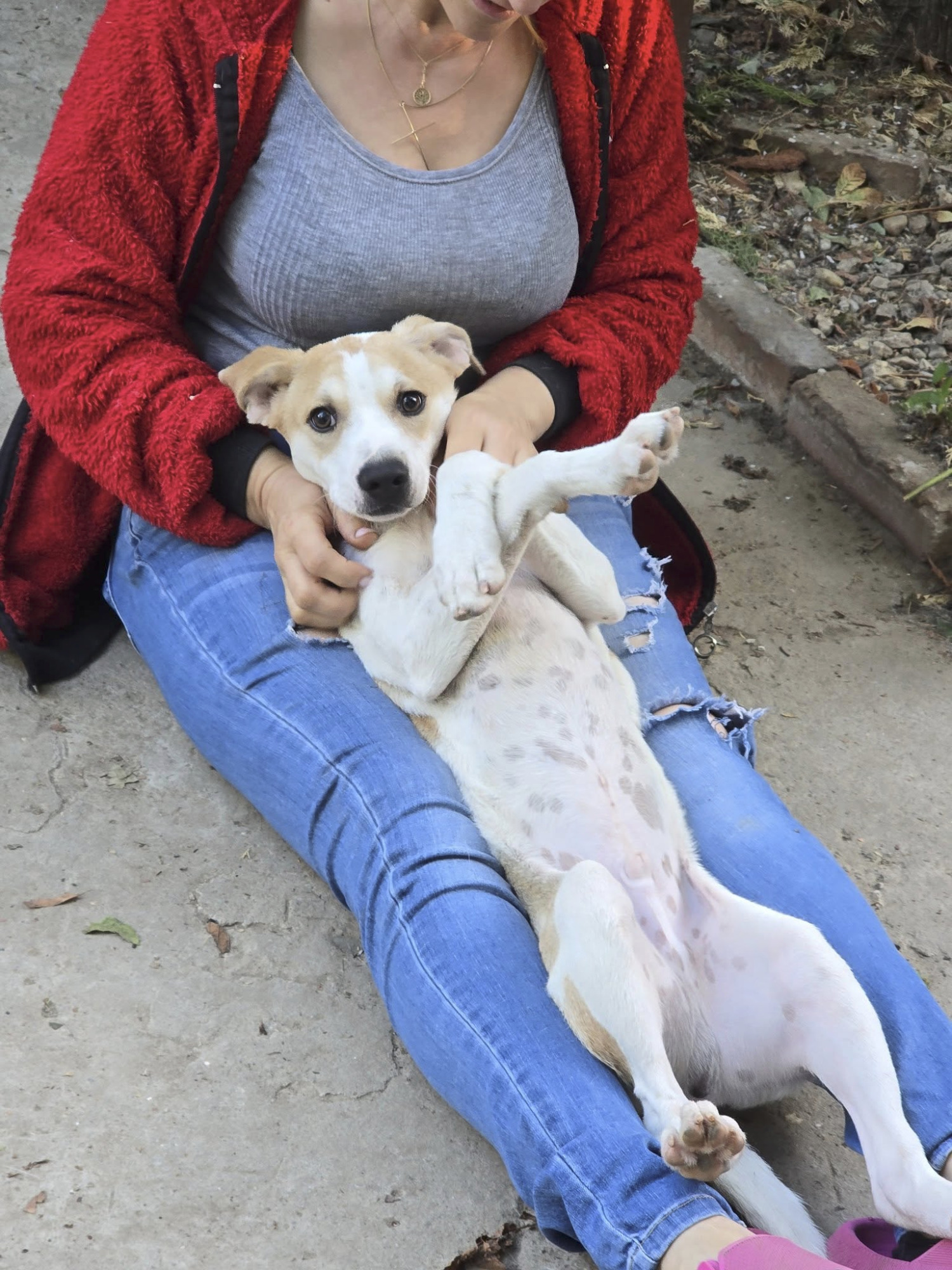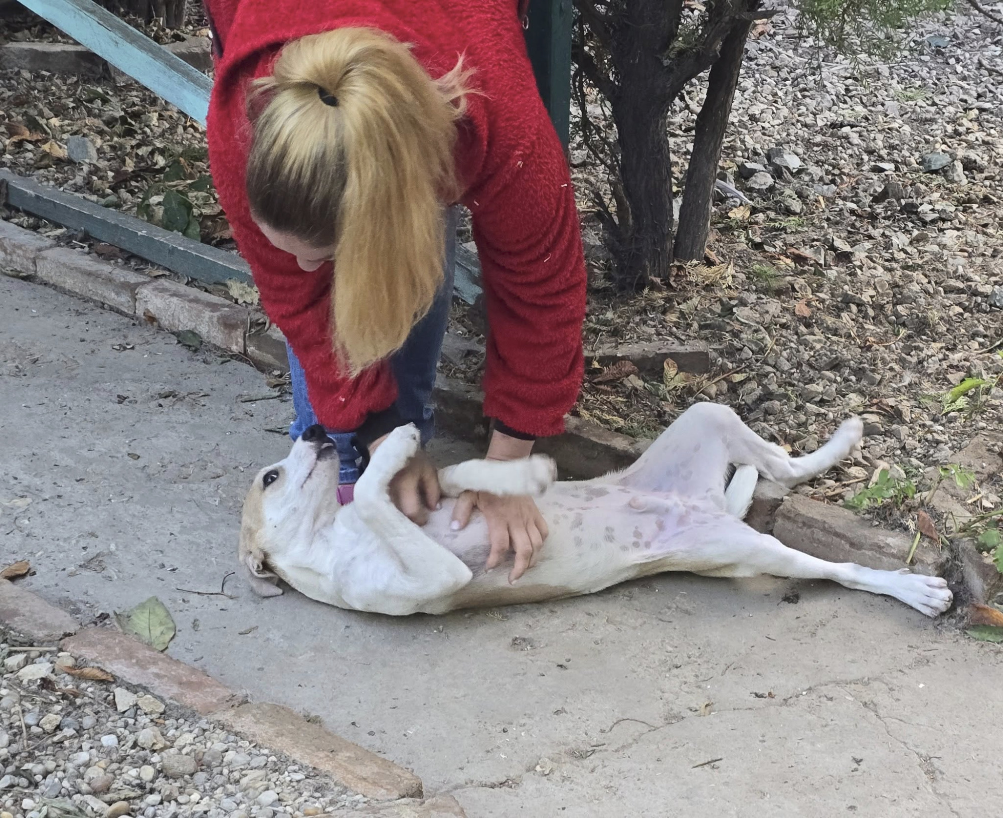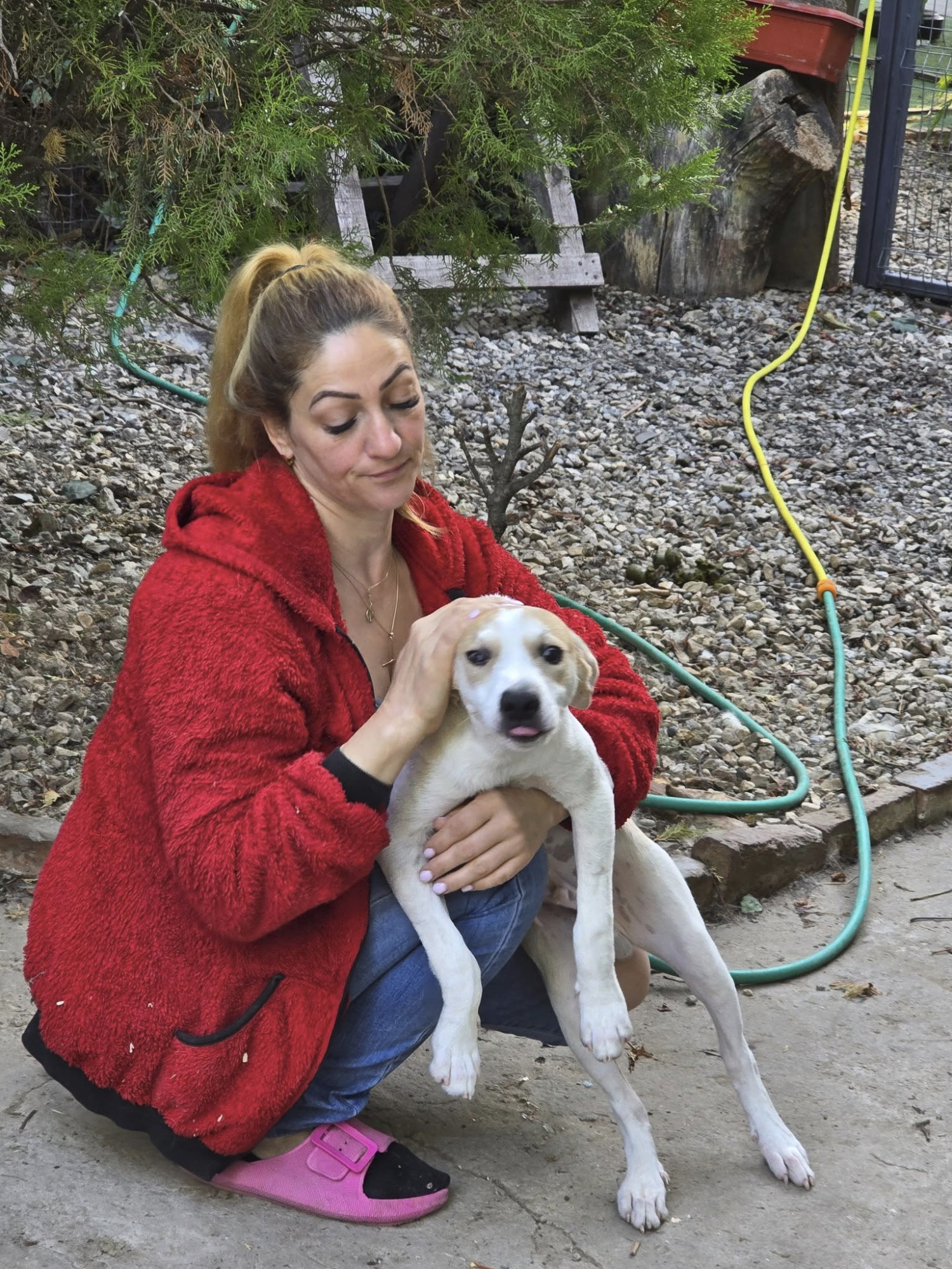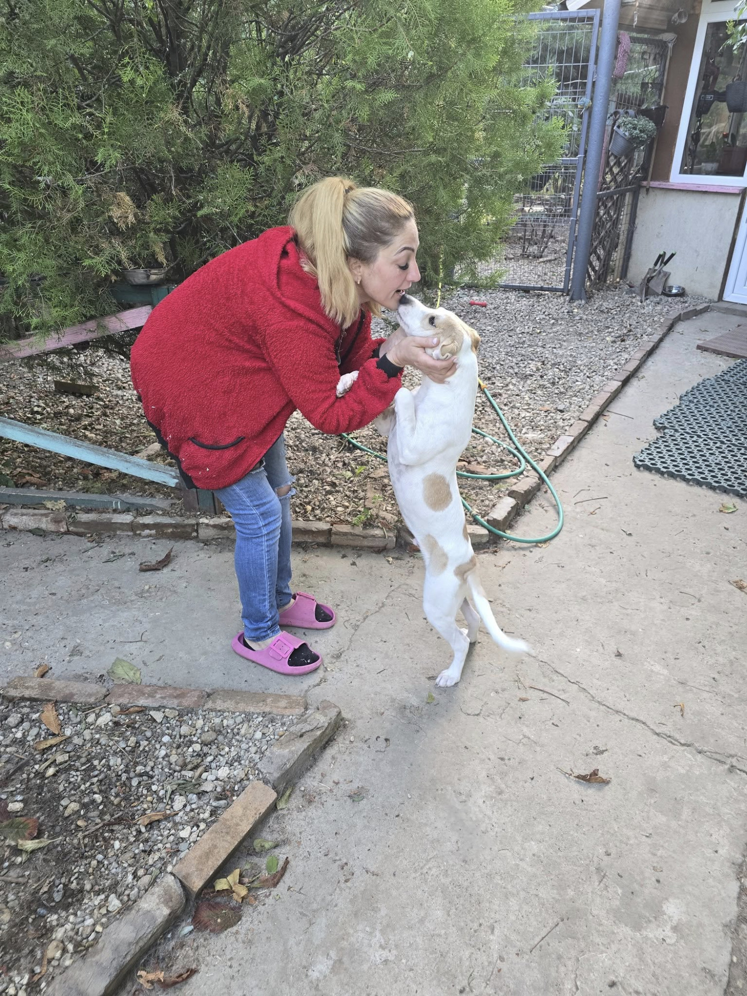 Caramel hat sich also quasi selbst eingeladen. Da im Quarantänebereich keine Box frei war, bekam er ein Plätzchen in der großen Garage, die längst mit Zwingern und Hütten zur Hunde- Unterkunft "umgebaut" wurde und konnte jeden Tag im Hof mit Dex und Denisa spielen und toben. Der bildhübsche und sehr " sportliche " Hundejunge fasste sofort Vertrauen und fand seine menschlichen Spielgefährten toll. Inzwischen konnte er ins Shelter umziehen, wo er mit Artgenossen seines Alters zusammenlebt - und mit ihnen den Freilauf unsicher macht. Caramel hat viel Energie und sprüht vor Lebensfreude. Er liebt es sich zu bewegen, ist blitzschnell und wie ein kleiner Flummi, wenn er begeistert Dex's Mitarbeiter begrüßt. Eigentlich bräuchte der Süsse viel mehr Platz und Auslauf, aber das kann das Shelter leider nicht bieten. Caramel nimmt und genießt was er kriegen kann - an Bewegungsfreiheit, Zeit und Zuwendung.