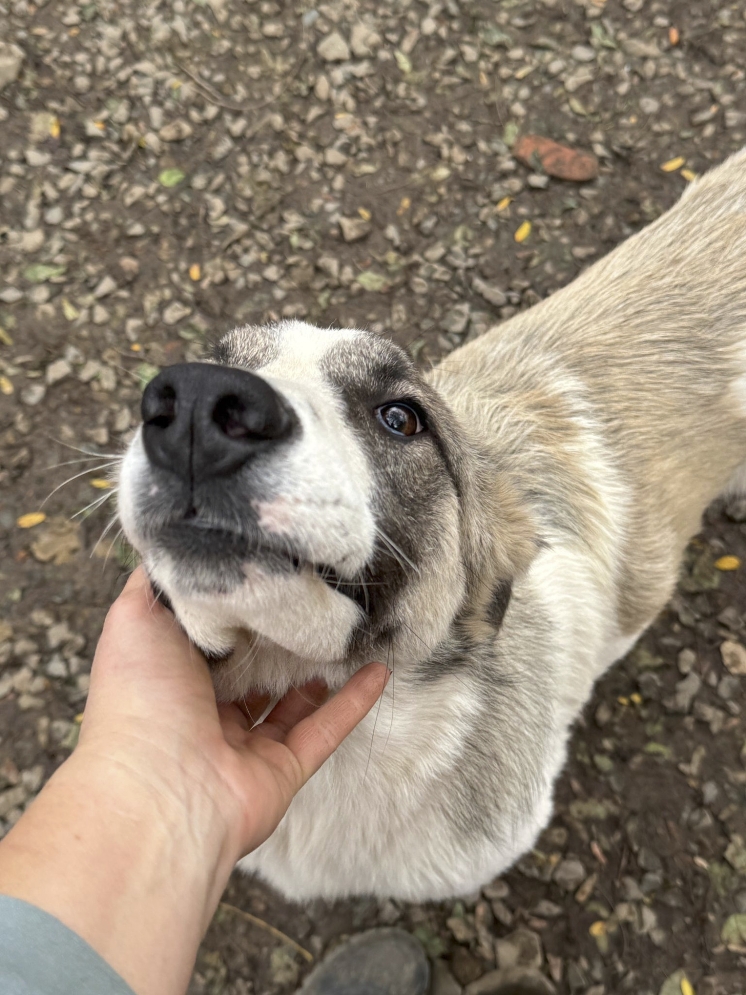Sie war noch ein Welpe, als Tierschützerin Aura sie dort zum ersten Mal sah. Da viele Streuner in der Umgebung von Dex's Shelter von Bauern und Schäfern stammen, die ihre Hunde nicht kastrieren lassen , klappert Aura ihre Höfe regelmässig ab, um die Männer zu überreden, genau das zu tun. Sie bietet ihnen an, die Hunde abzuholen, im Shelter kastrieren zu lassen und sie dann wieder zurück zu bringen. Soare's ursprünglicher Besitzer war ein besonders" harter Brocken" , der sich erst breit schlagen liess wenigstens einige seiner Hunde kastrieren zu lassen, als 2 davon verletzt waren und er medizinische Hilfe für sie brauchte. Die junge Hündin, die später den Namen Soare bekam, war eine davon. Sie hatte eine tiefe Wunde am Bein, die auch schon etwas entzündet war und kam gleich in den Klinikbereich des Shelters, als der Schäfer Aura endlich erlaubte, sie mitzunehmen. Dort wurde sofort mit der Behandlung begonnen - zum Glück noch rechtzeitig genug um eine schwere Infektion und Folgeschäden zu erhindern. Anfangs war die Süsse sehr ängstlich und unsicher - viel Gutes hatte sie auf dem Hof nicht erlebt und dementsprechend wenig Vertrauen hatte sie in Menschen. Das änderte sich aber von Tag zu Tag . Sie begriff schnell, dass Hände auch gut tun und heilen können - und streicheln und Leckerchen verteilen... Inzwischen ist Soare nicht nur kerngesund, sie hat sich auch zu einem freundlichen und fröhlichen Hundemädel entwickelt. Mit ihren Hundekumpels im Freilauf hat sie keine Probleme - sie versteht sich mit Rüden und Hündinnen gleichermaßen. Dex's Mitarbeiter werden in der Zwischenzeit freudig und ohne Scheu begrüsst und sie geht ihren ausgestreckten Händen entgegen, um sich streicheln zu lassen, anstatt vor ihnen zurück zu weichen. Dass sie eigentlich zurück auf den Hof zu ihrem Besitzer sollte, hatte alle im Shelter - und bei der Hundehilfe KN sehr bedrückt, so dass Aura schließlich beschloss den Schäfer zu fragen, ob er ihr Soare nicht überlassen würde. Die Sorge, dass er nicht zustimmen und sie zurück fordern würde, war unbegründet - er war wohl eher froh, sie los zu sein... Soare hat sich gut eingelebt und scheint sich recht wohl zu fühlen, in Dex's Shelter.
