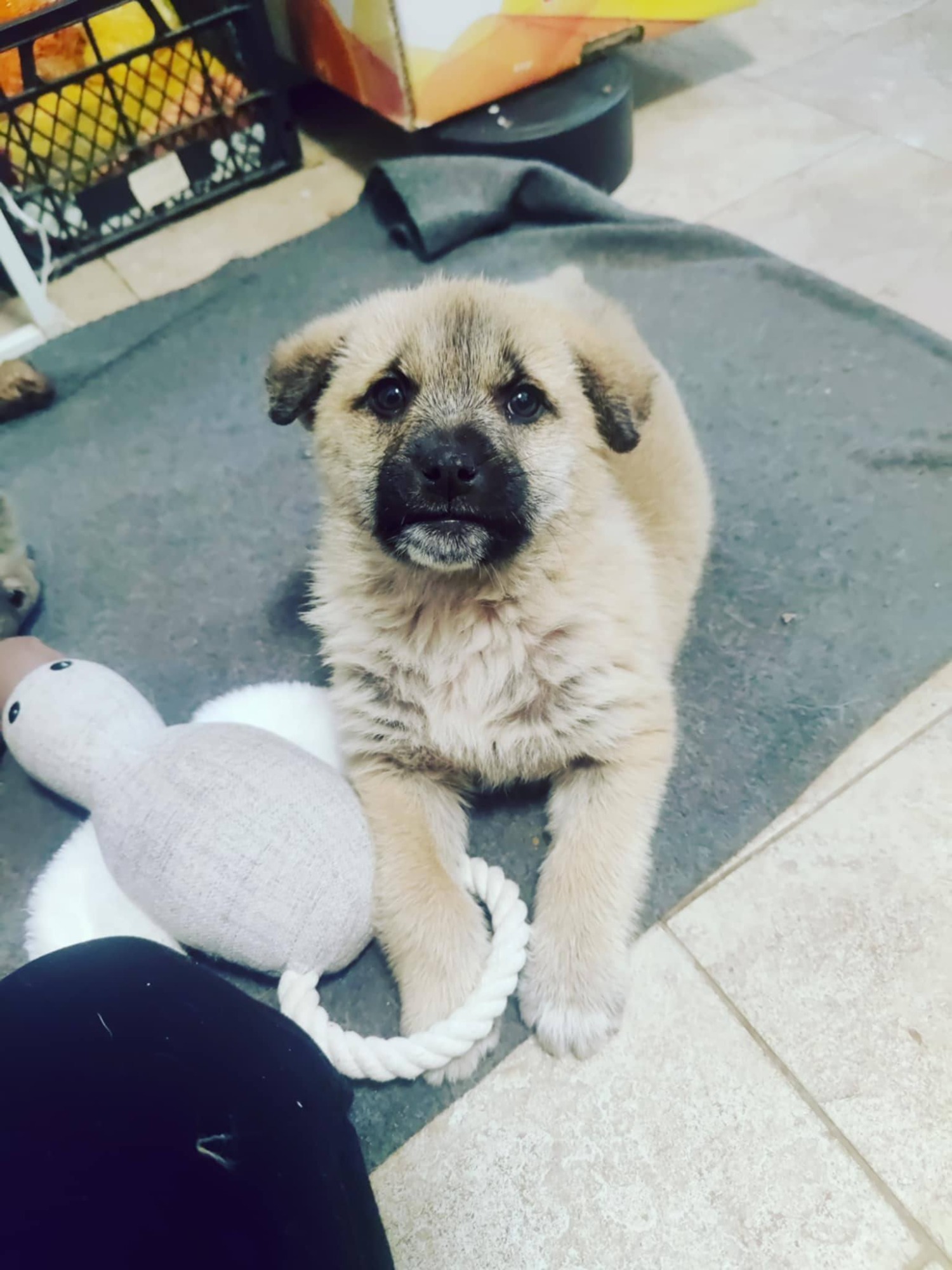 Er packte die Süsse in seine Motorradtasche und nahm sie mit nach Hause. Lusi ist nicht der erste Hund dem er und seine Frau Ana- Maria das Leben gerettet und ein Zuhause auf Zeit gegeben haben. Das Hundemädel wurde zum Tierarzt gebracht, der sie durchcheckte und als kerngesund befand und wartet nun bei ihrer Pflegefamilie auf ihr " Für- immer- Zuhause". Wie alle Welpen ihres Alters ist Lusi verspielt und neugierig, aber auch sehr verschmust und anhänglich.
